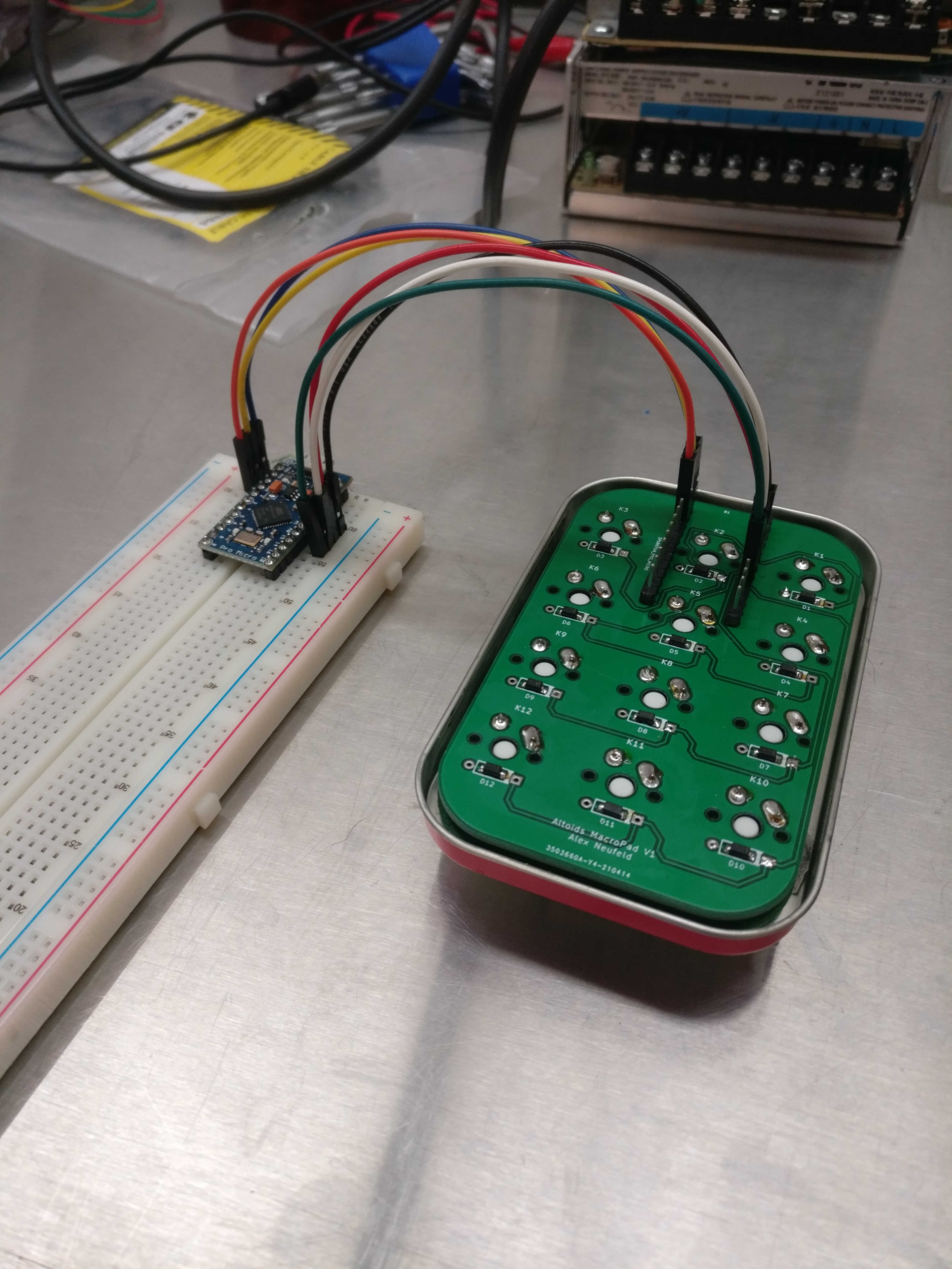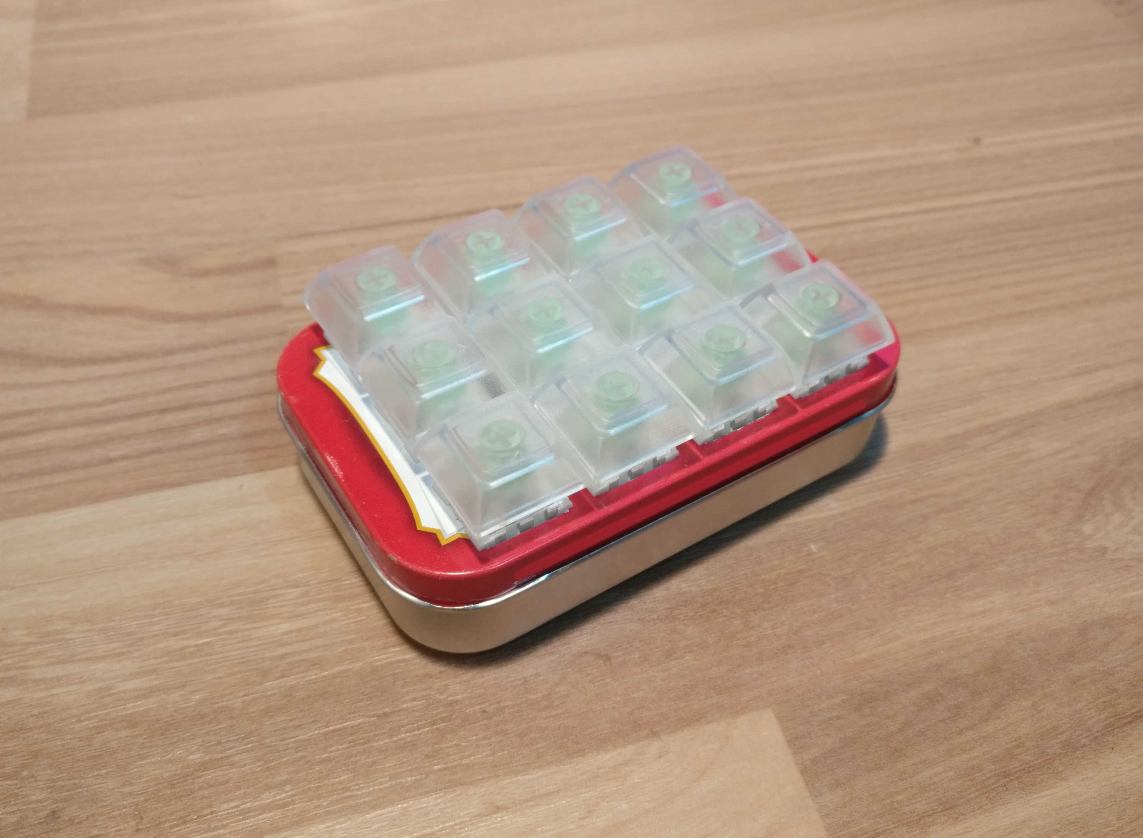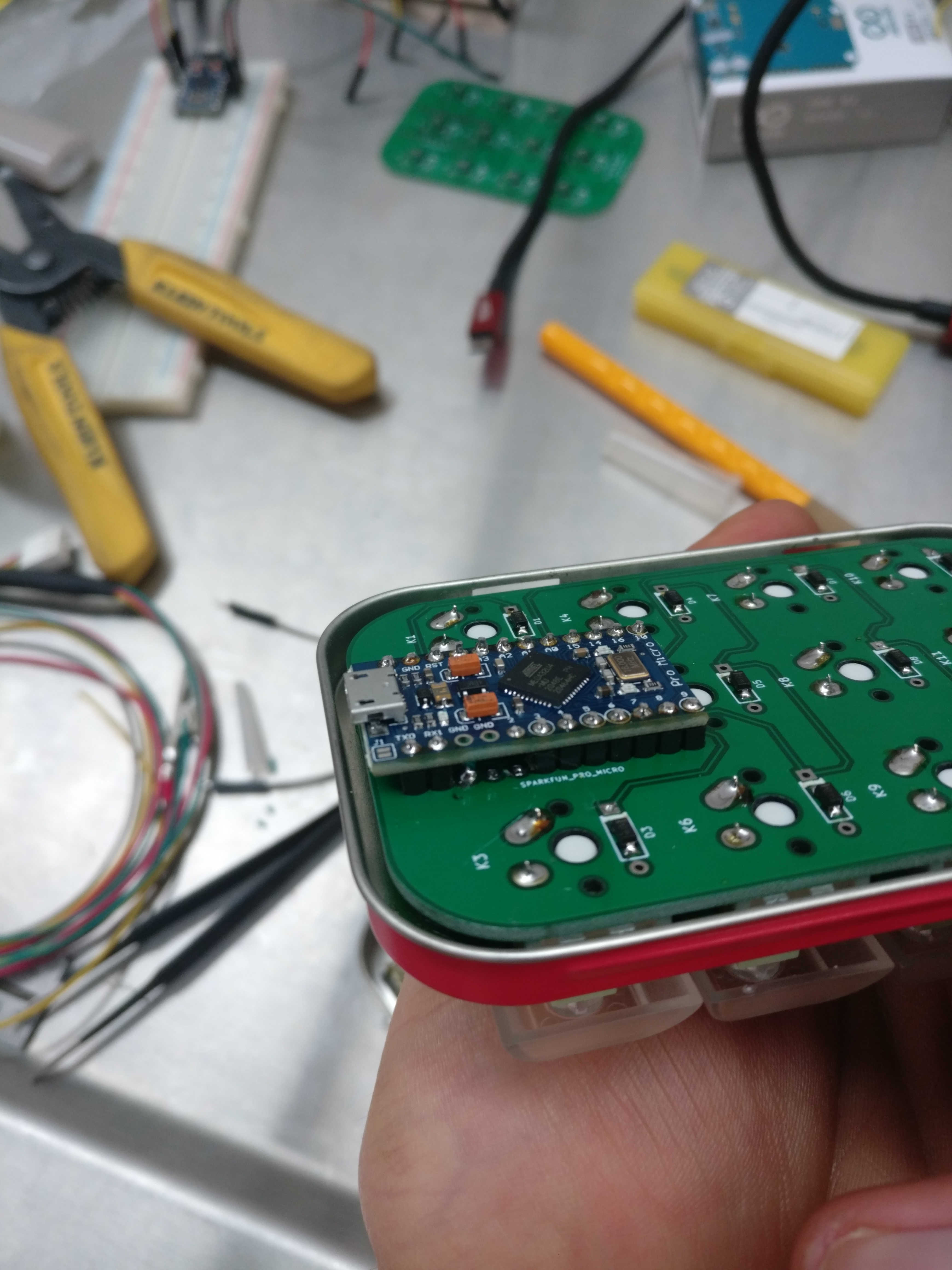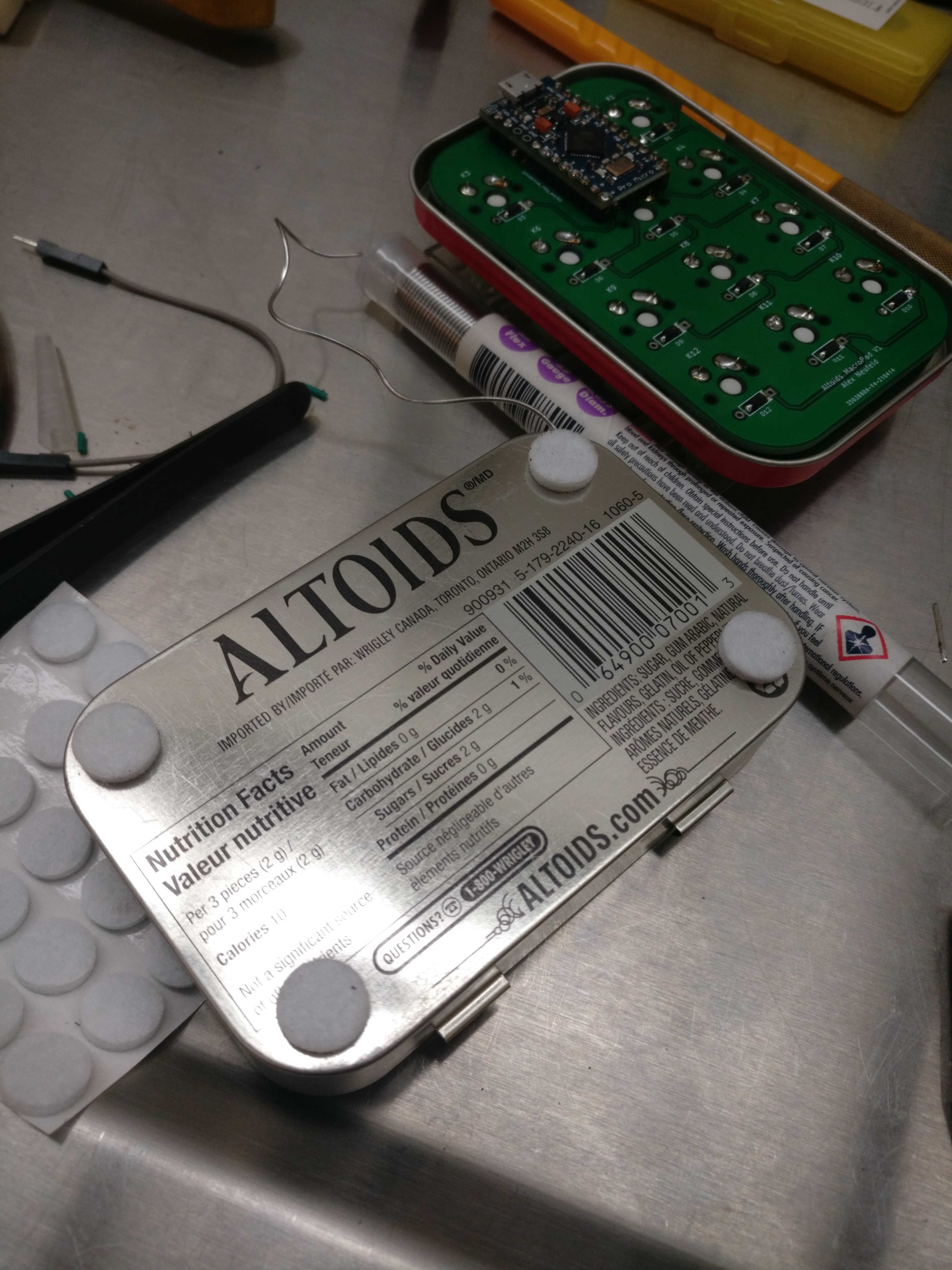 I’ve been wanting to do something with custom mechanical keyboards for a while now. It occurred to me that a 3x4 grid of cherry style switches could just barely fit into a regular-sized mint tin. The result was a fun project that introduced me to PCB design and working with arduino-style boards. Some images of the build process are collected below. I also put the design files on Github in case anyone wants to replicate this work.