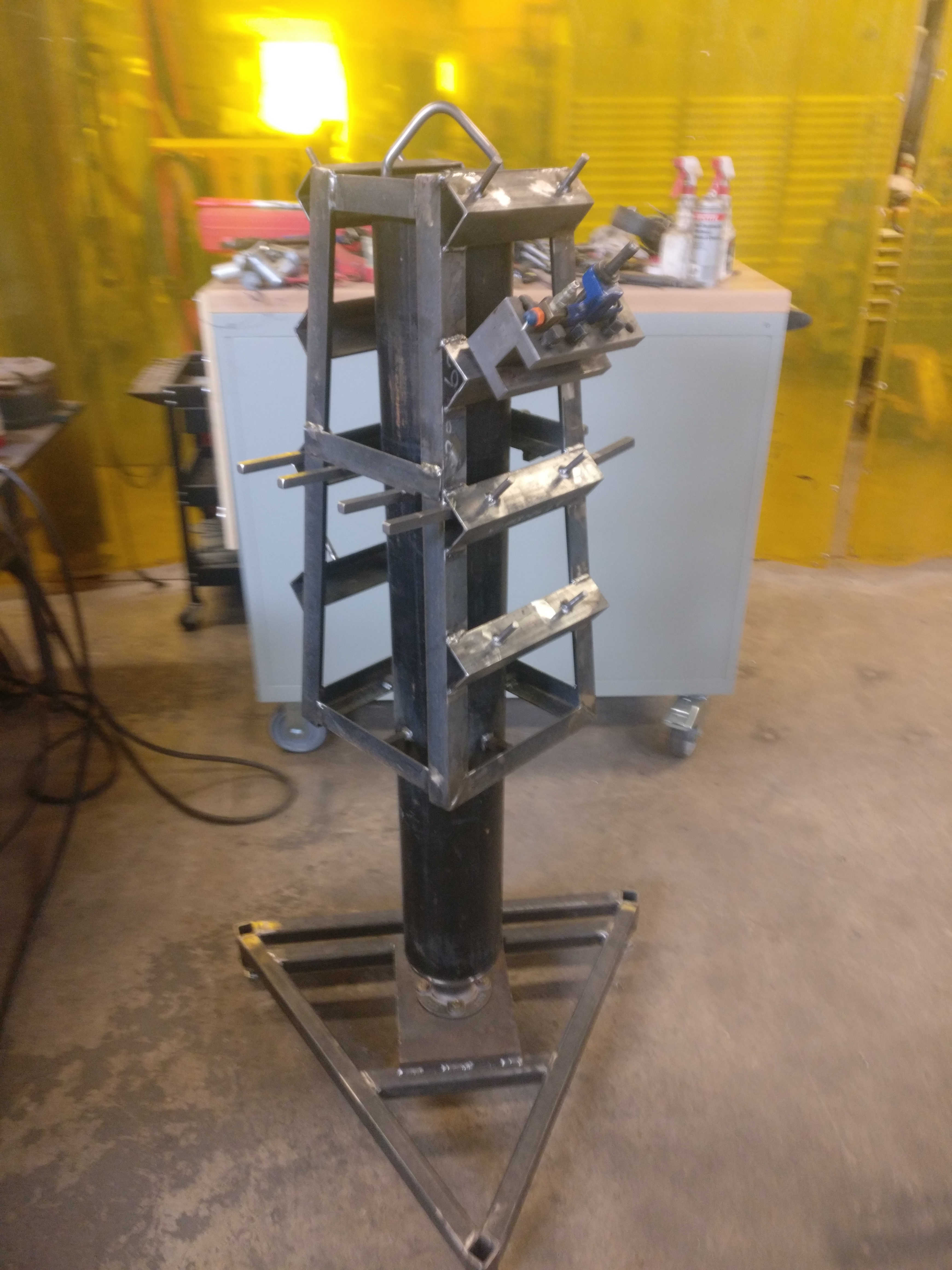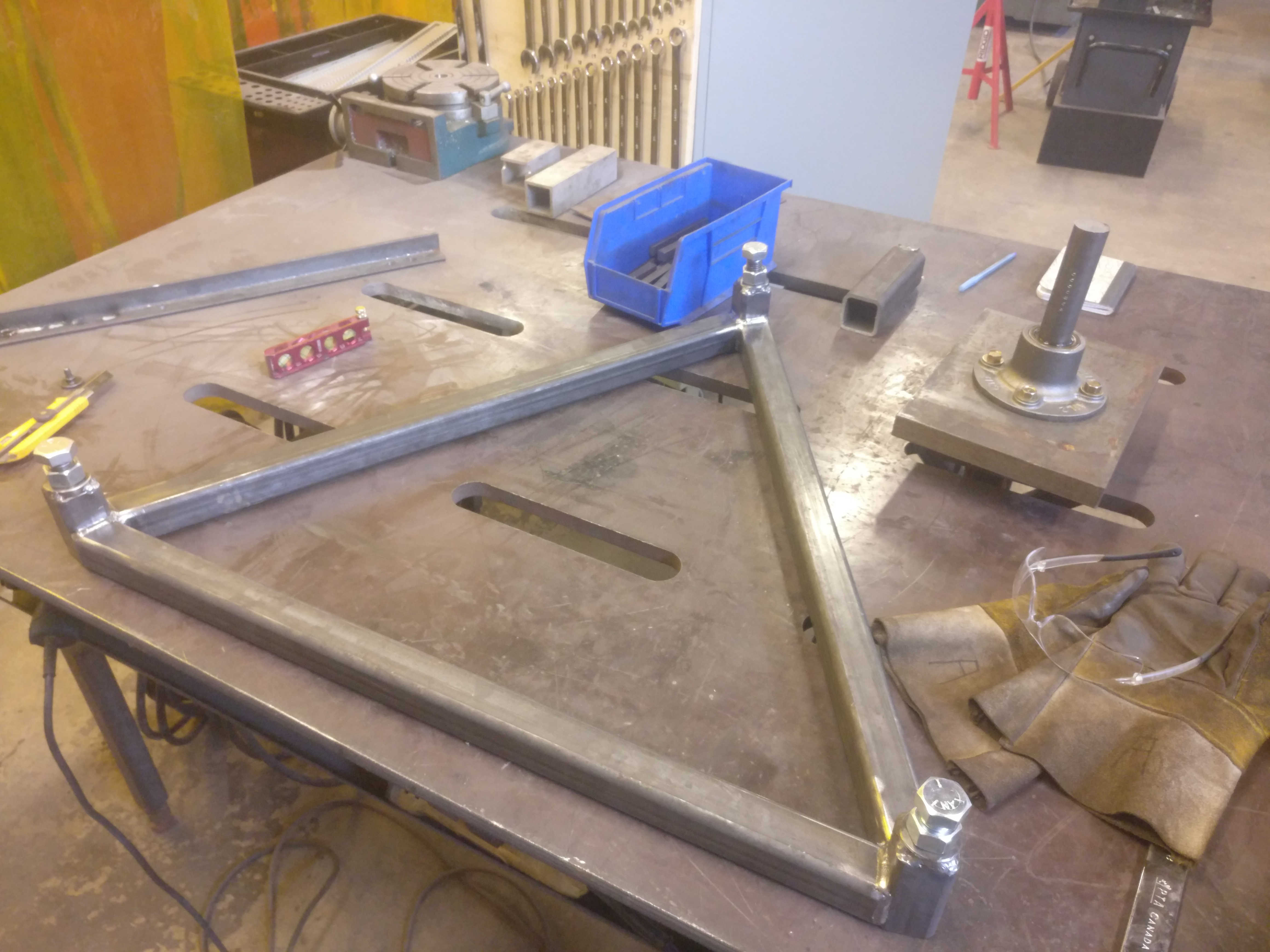 It’s summer, and that means it’s time to hide in a machine shop and fabricate stuff. This project is for a friend of a former employer’s shop. they wanted a way to store the tooling for a large lathe in a way that would be accessible, but take up less bench space. We settled on a kind of lazy-suzan design, using a cheap trailer axle as a pivot (Take note, that particular feature works surprisingly well for what it cost!)