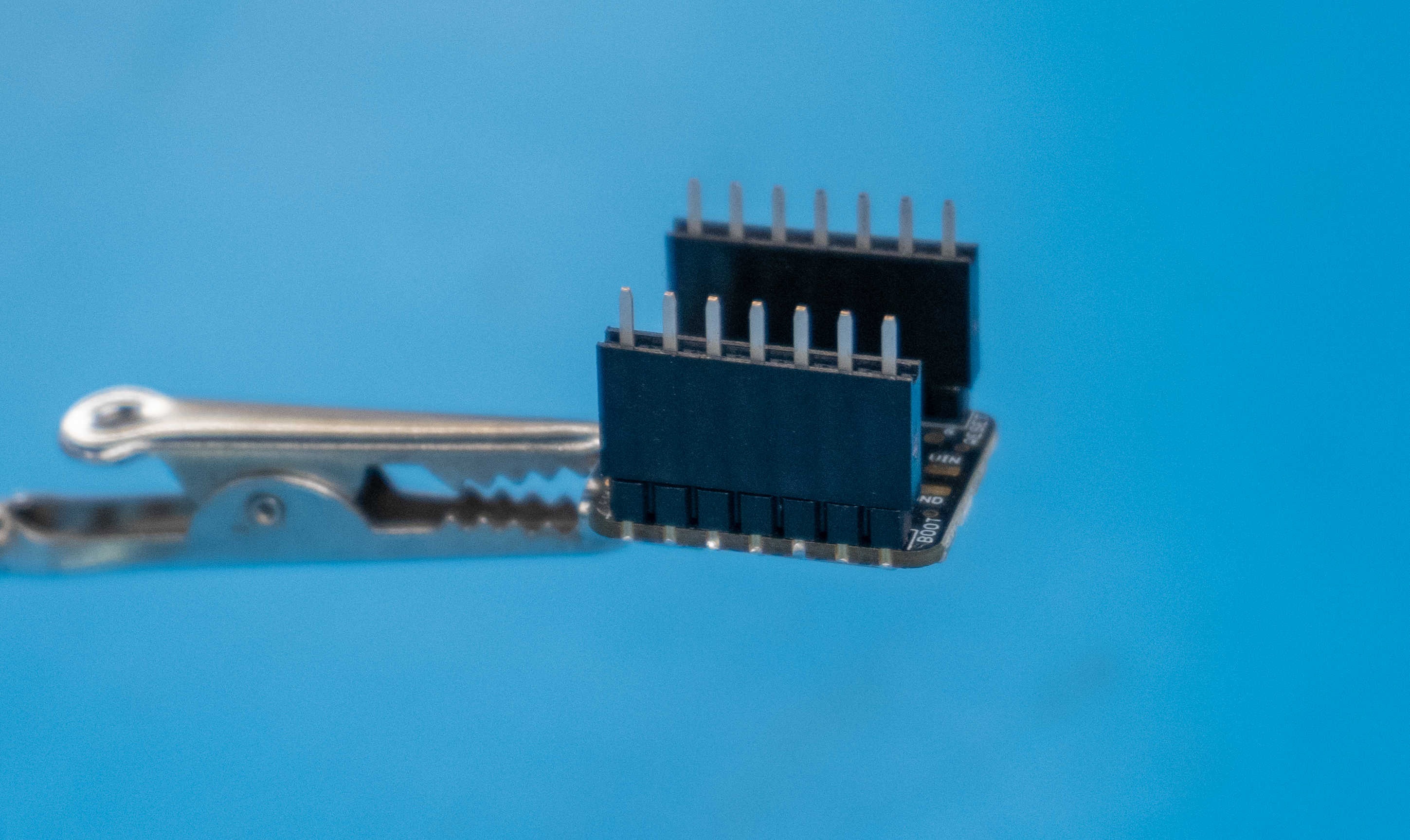 Next, push the pin header sockets into the exposed header side on the MCU.
