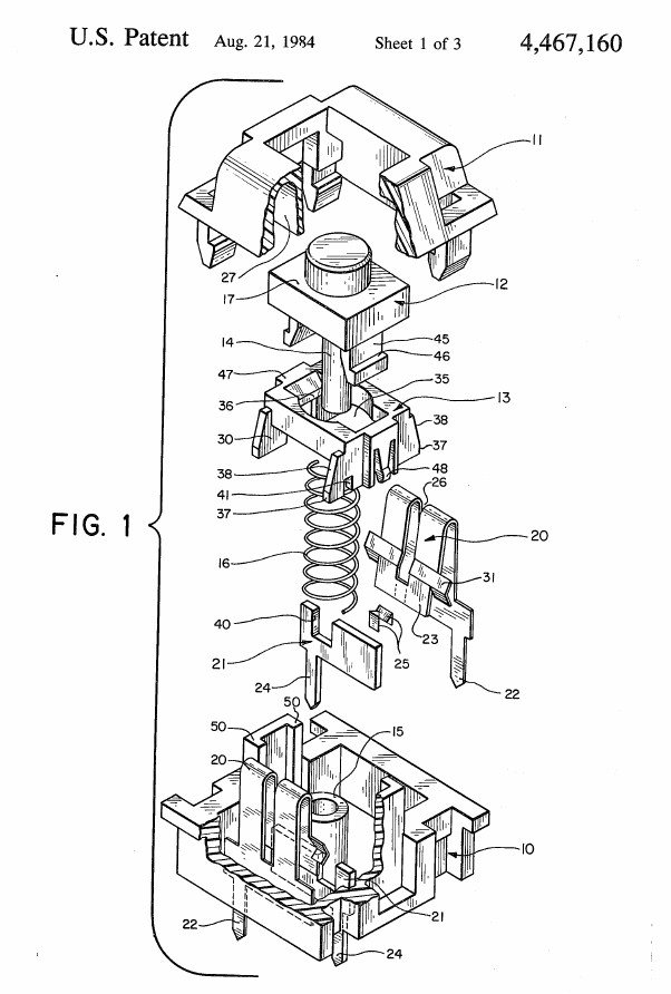 The switches in this kit follow a standard form factor for use with keyboards and other input devices. the kit comes with switches that make a noticeable click sound, and require a moderate amount of force to actuate. Many different brands and styles of compatible switches are available, so you can order your own to replace the ones in the kit if you want! (Check out this article for a more in-depth look at keyboard switch types)